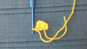 Round 1: Chain 3 (this counts as your first treble stitch), then 11 more trebles into centre (12 stitches total) (Treble: Yarn over hook, down the hole, pull through, yarn over hook, through 2, yarn over hook through 2)  Finish with a slip stitch to join the round.